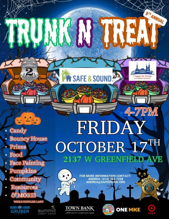 District 2 - Trunk N Treat District 2 - Trunk N Treat 4:00 pm – 7:00 pmOctober 17, 2025 Candy, prizes, food and fun! Christ St. Peter's School 2137 W. Greenfield Ave.Milwaukee, WI 53204View LocationMap Christ St. Peter's School iCal Google View full calendar