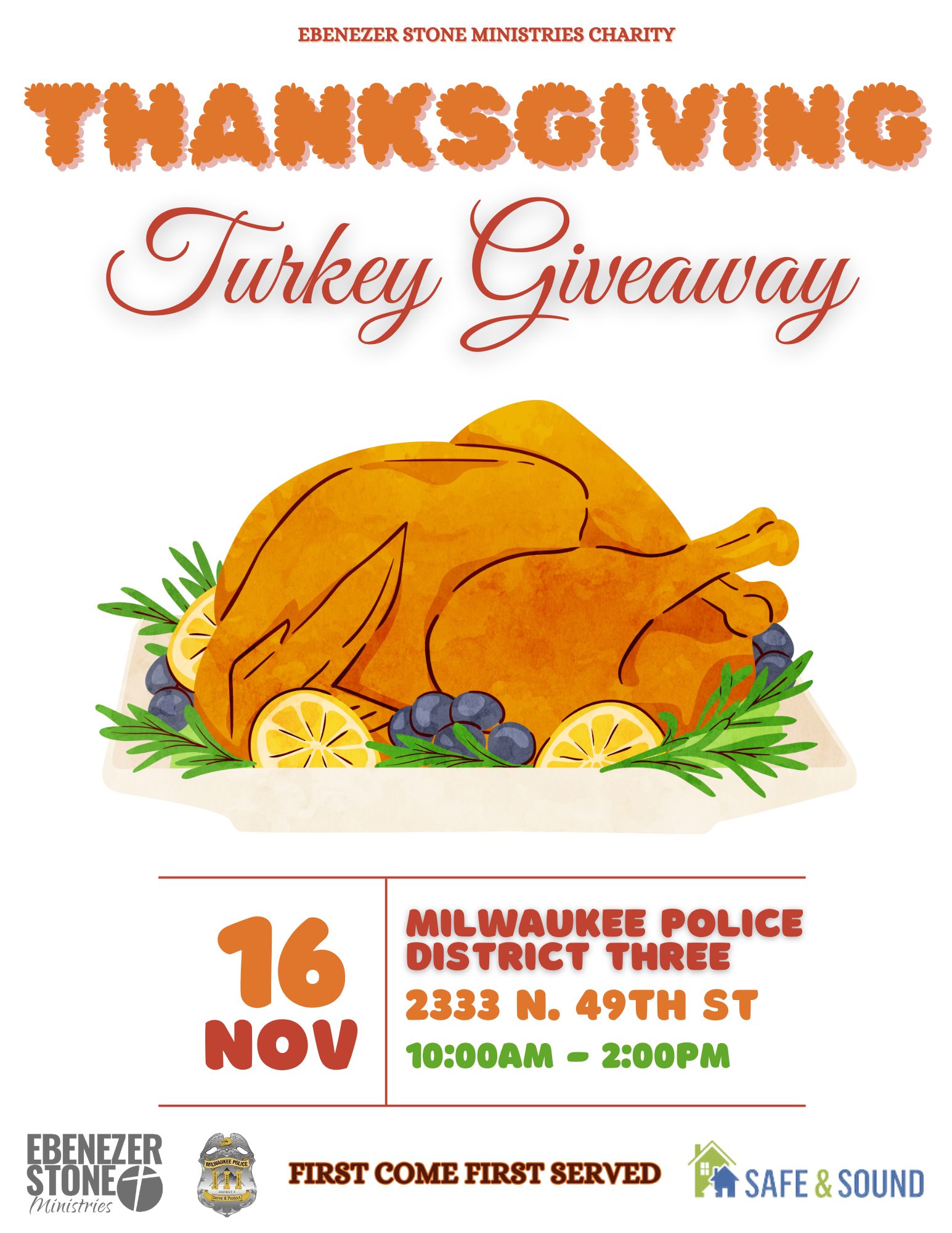 District 3 - Thanksgiving Turkey Giveaway 10:00 am – 2:00 pmNovember 16, 2023 Milwaukee Police District 32333 N 49th St Milwaukee, WI 53210View LocationMap Milwaukee Police District 3 iCal Google View full calendar