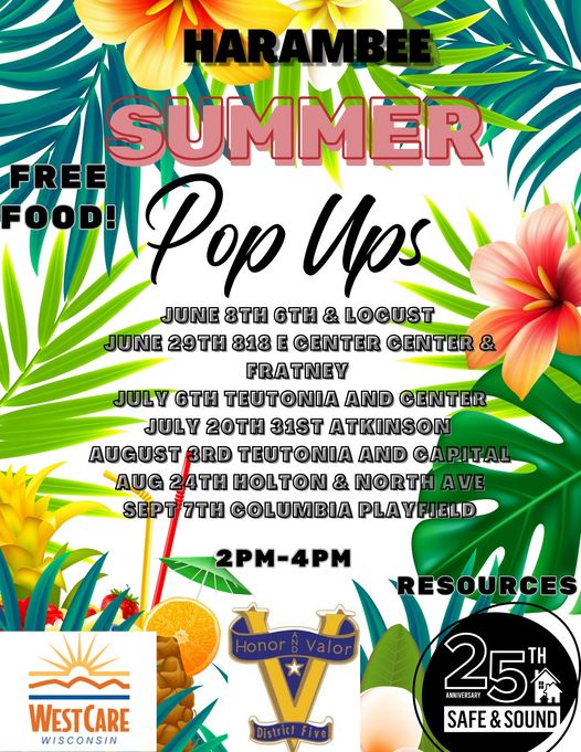 District 5 - Harambee Summer Pop-Up Events 2:00 pm – 4:00 pmJune 8, 2023 iCal Google View full calendar