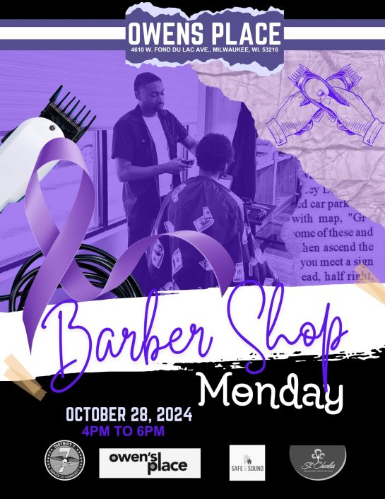 District 7 Barber Shop Monday District 7 Barber Shop Monday 4:00 pm – 6:00 pmOctober 28, 2024 Owen's Place4610 W Fond Du Lac Ave.Milwaukee, WI 53216View LocationMap Owen's Place iCal Google View full calendar