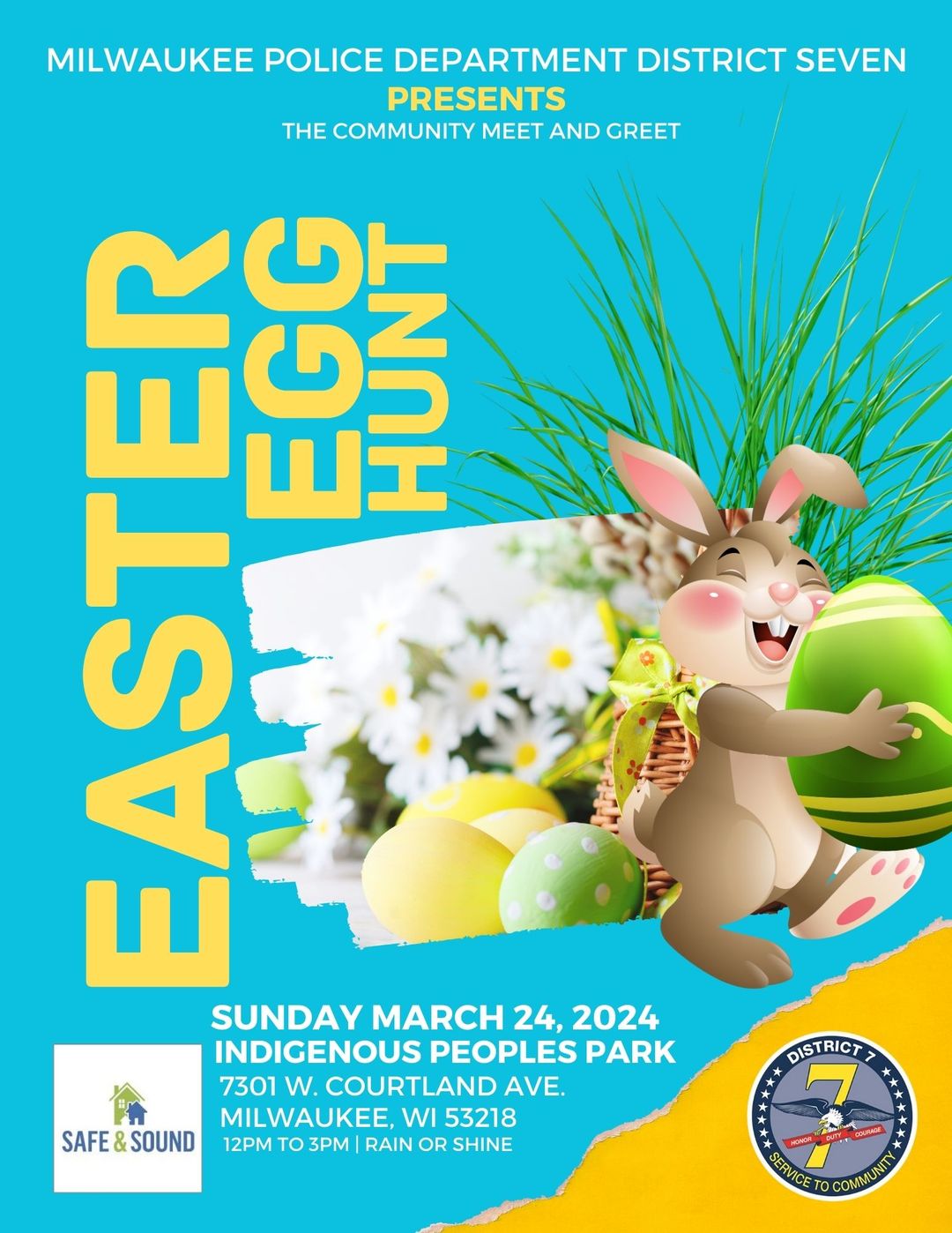 District 7 - Easter Egg Hunt District 7 - Easter Egg Hunt 12:00 pm – 3:00 pmMarch 24, 2024 Indigenous People's Park 7301 W. Courtland Ave.Milwaukee , WI 53218View LocationMap Indigenous People's Park iCal Google View full calendar