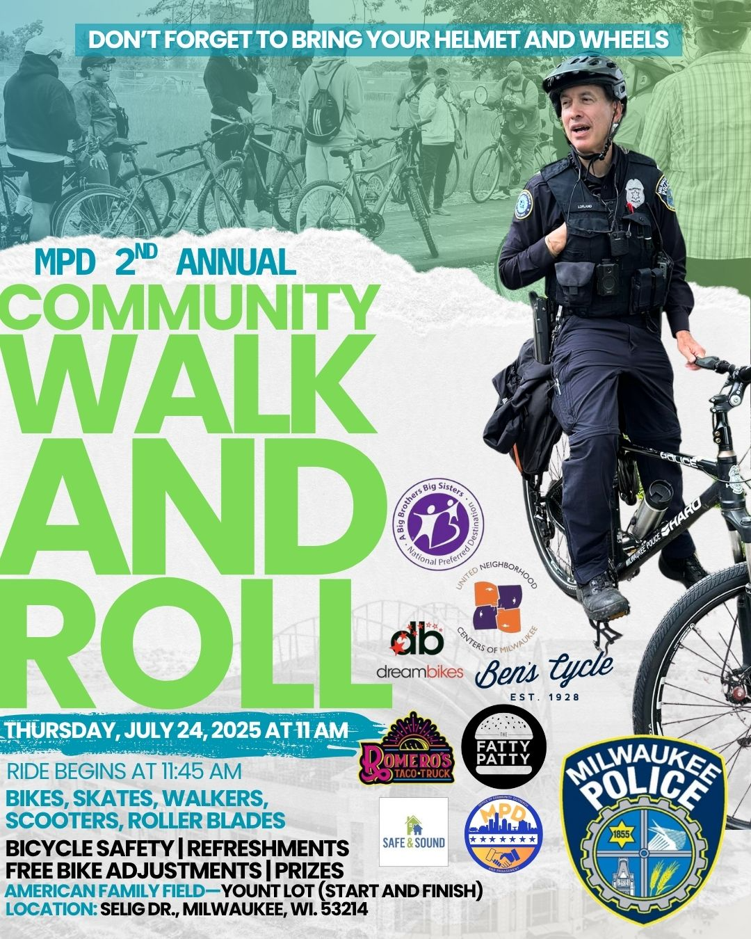 Ride begins at 11:45 a.m. Bikes, skates, walkers, scooters, roller blades. Bicycle safety, refreshments, free bike adjustments, prizes. Don't forget to bring your helmet.